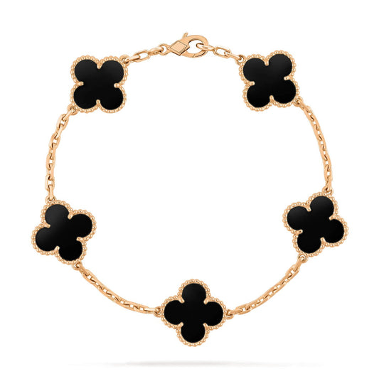 [Olivia JW]CLOVER 5 MOTIFS BLACK ONYX BRACELETRegular price From $58.24 USDRegular priceUnit price per-